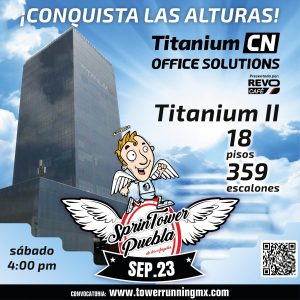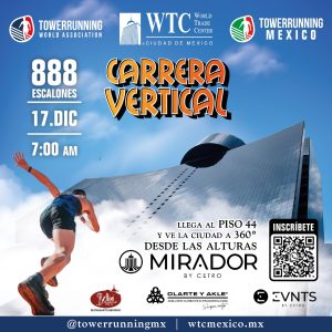 2022◄ ►2024 7a. ed. Tower Running WTC Ciudad de MéxicoDiciembre 17, 2023Ciudad de México 44 pisos,888 escalones Resultados Fotografías Tower Running Hilton Garden Inn PueblaSeptiembre 24, 2023Ciudad de Puebla 18 pisos360 escalones Resultados Fotografías Tower Running Titanium ISeptiembre 23, 2023Ciudad de Puebla 15 pisos311 escalones Resultados Fotografías Tower Running Titanium IISeptiembre 23, 2023Ciudad de Puebla 18 pisos359 escalones Resultados Fotografías 8a. ed. Carrera Vertical Bomberos ZapopanAgosto 20, 2023Zapopan, Jalisco 12 pisos312 escalones40 mts de altura Resultados Generales Fotografías Fitsi Stairs ChallengeAgosto 13, 2023Fitsi Condesa, CDMX Resistencia en escaleras sin fin Resultados Generales Fotografías 8a. ed. Tower Running Trail TlaxcalaAgosto 06, 2023Ciudad de Tlaxcala 1400 escalones Resultados Generales Fotografías 7a. ed. Tower Running Pabellón MJulio 07, 2025Monterrey, Nuevo León 1050 escalones200 mts de altura Resultados Sprint (1a. vuelta) Power Hour Femenil Power Hour Varonil Fotografías 1a. ed. Tower Running Trail OtomiMayo 28. 2023Centro Ceremonial Otomí Resultados Sprint Resultados Power Hour Fotografías Torre Latino ChallengeMarzo 05, 2023Ciudad de México 42 pisos720 escalones130 mts de altura Resultados Generales Fotografías 2022◄ ►2024
