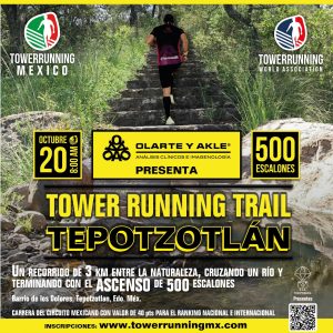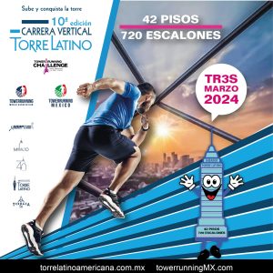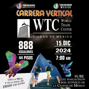 2023◄ ►2025 8a. ed. Tower Running WTC Ciudad de MéxicoDiciembre 15, 2024Ciudad de México 42 pisos,868 escalones 1er. Ascenso, Ranking Nacional 2o. Ascenso, Ranking Int. (Campeonato Nal.) Fotografías Tower Running Trail TepotzotlánOctubre 20, 2024Tepotzotlán, Estado de México 3K Trail +500 escalones Resultados Fotografías 9a. ed. Carrera Vertical Bomberos ZapopanAgosto 18, 2024Zapopan, Jalisco 16 pisos321 escalones50 mts de altura Resultados Generales Fotografías 9a. ed. Tower Running Trail TlaxcalaAgosto 04, 2024Ciudad de Tlaxcala 1400 escalones Resultados Generales Fotografías 7a. ed. Tower Running Pabellón MJulio 07, 2025Monterrey, Nuevo León 1050 escalones200 mts de altura Resultados Sprint (1a. vuelta) Power Hour Femenil Power Hour Varonil Fotografías 2a. ed. Tower Running Trail OtomiMayo 26. 2024Centro Ceremonial Otomí Resultados Sprint Resultados Power Hour Fotografías Torre Latino ChallengeMarzo 03, 2024Ciudad de México 42 pisos720 escalones130 mts de altura Resultados Generales Fotografías Tower Running Oriental PueblaEnero 28. 2024Oriental Puebla 900 mts planos +1415 escalones Resultados Generales Fotografías 2023◄ ►2025